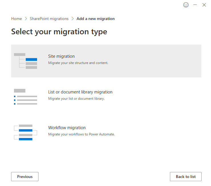 Then, choose "List or document library migration".