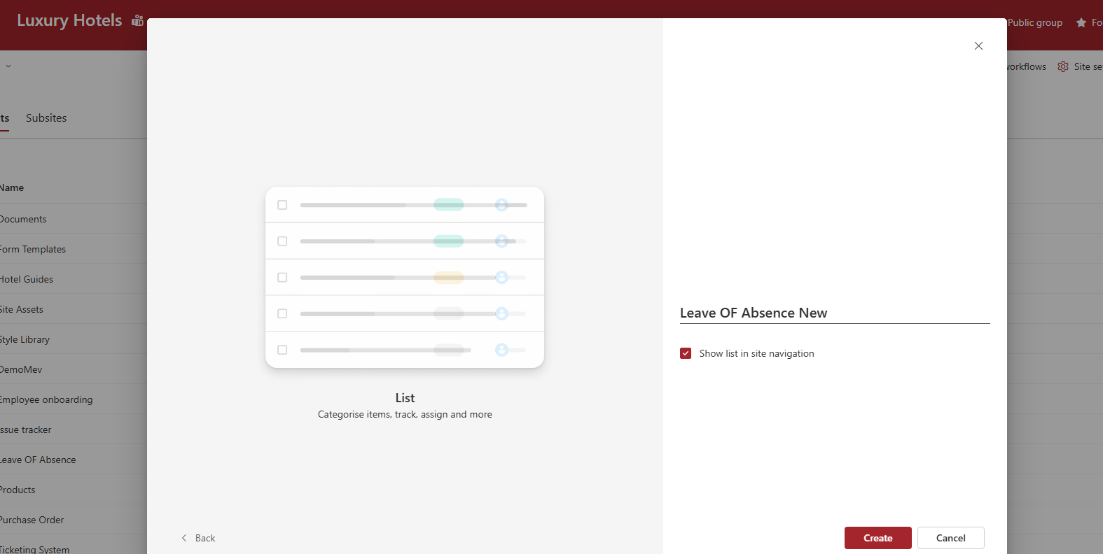 Finalize: Choose a name for your new list and click Create.