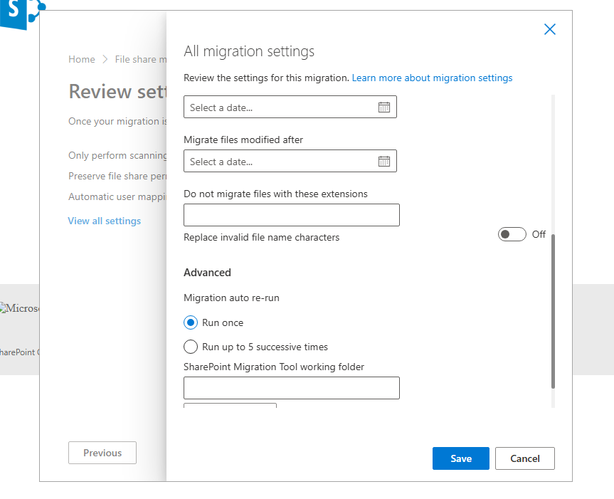 Date Filtering: Migrate files modified only after a specific date.