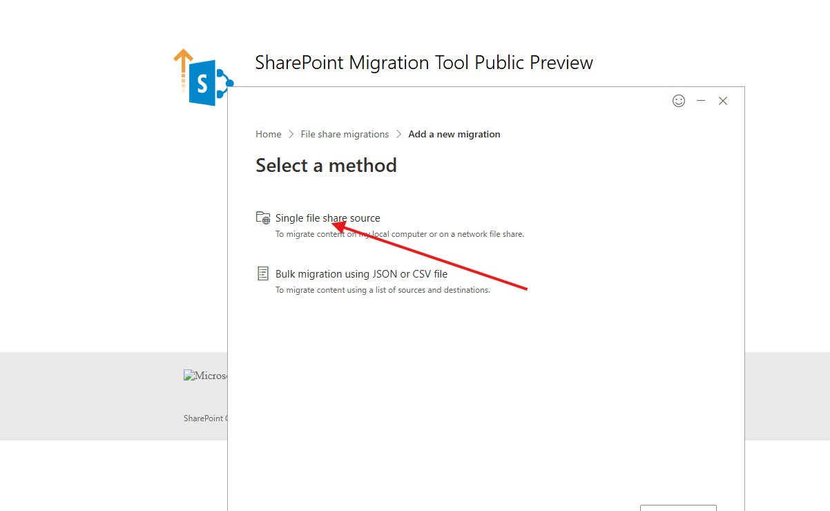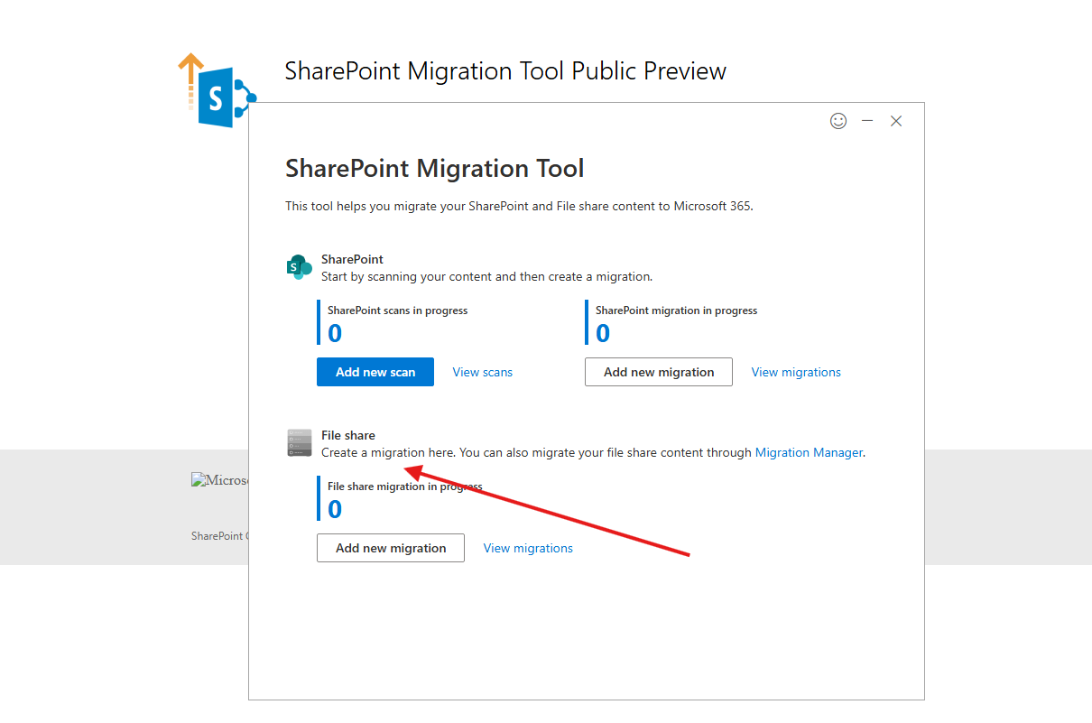 Start New Migration: Within the application, select Add new migration under the File Share section.