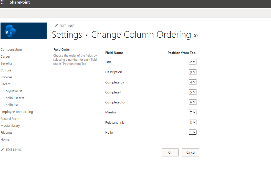 There, we see the columns and their display order. We change the order based on our needs and click OK.
