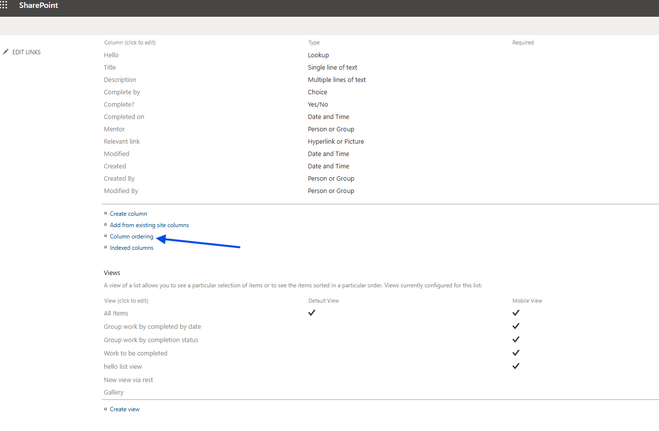 In the following step, we scroll down to the Columns section and select Column ordering.