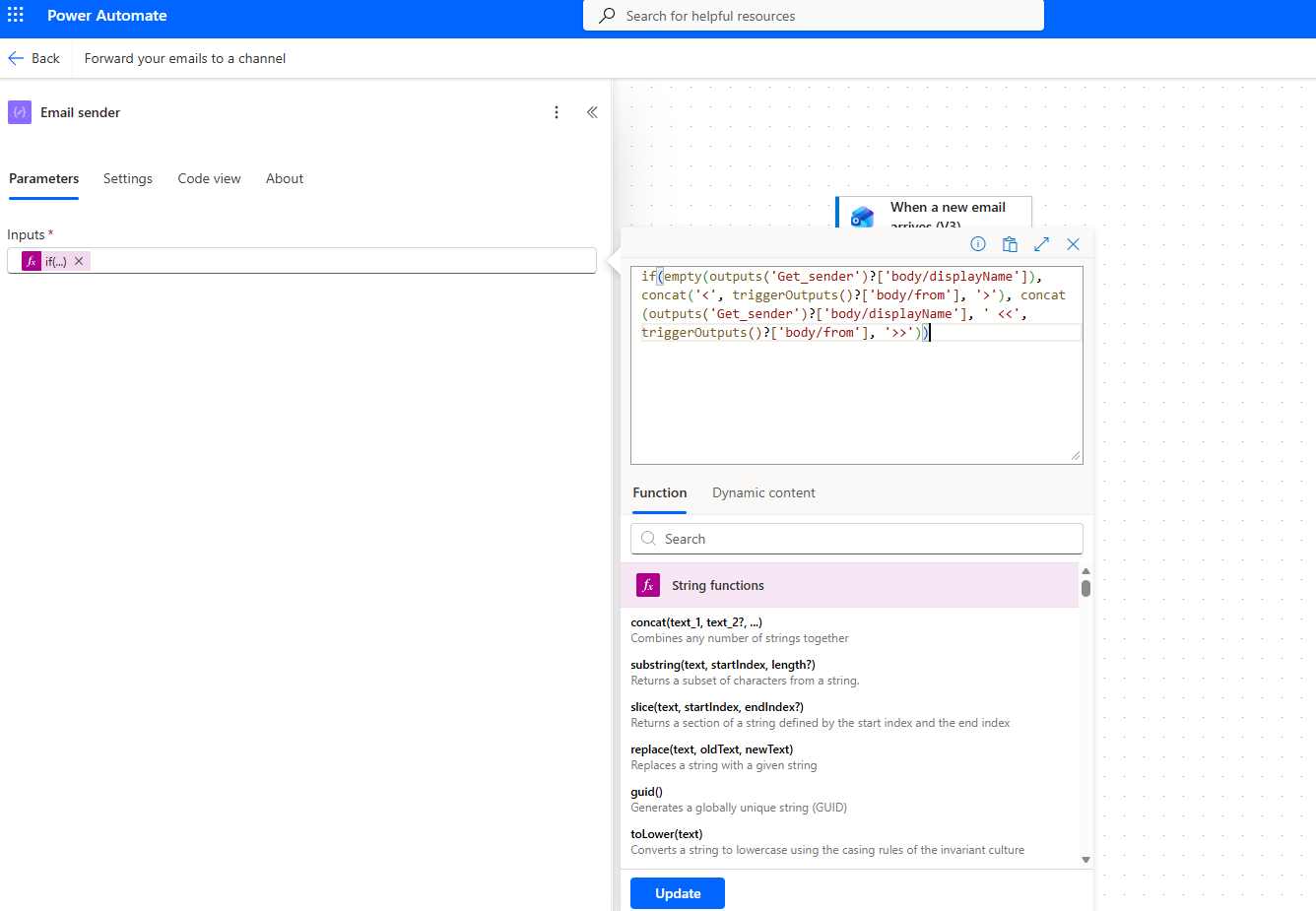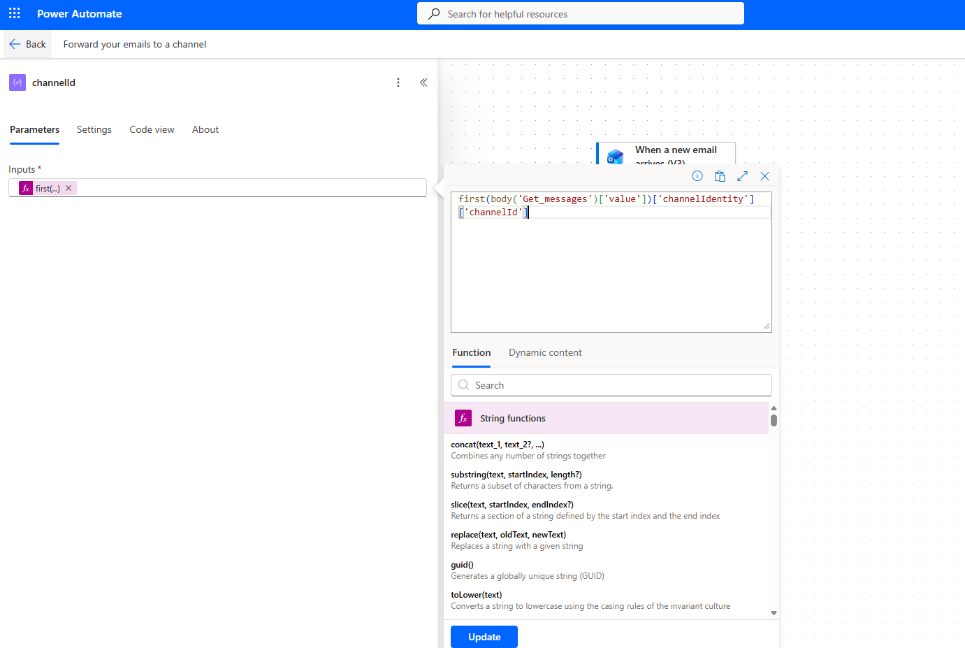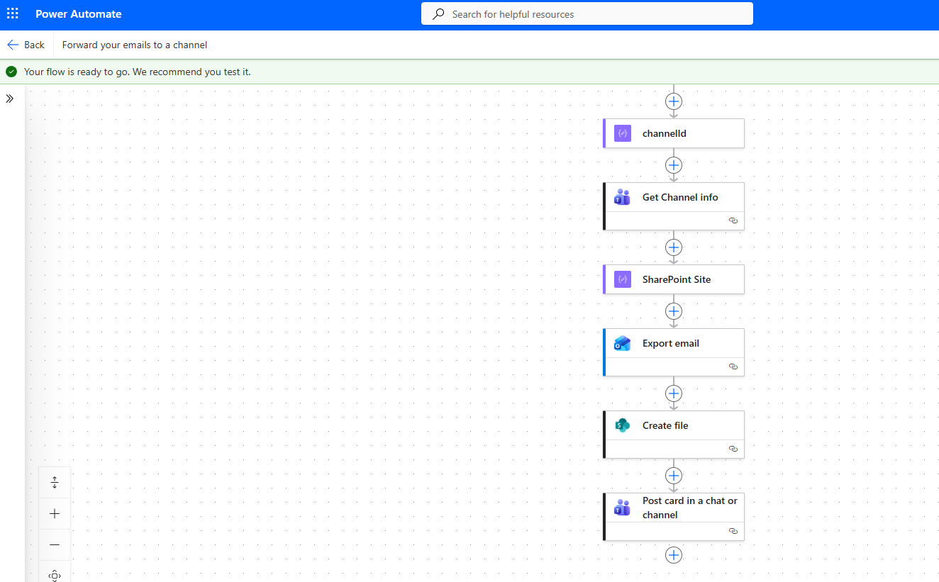 We type Forward your emails to a channel and select the ready-made template.