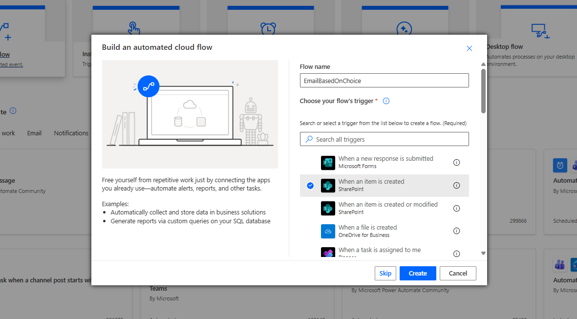 In today’s post, we’ll see how we can send an email to a user when a new item is created in a list, based on the selection of a Choice-type column.