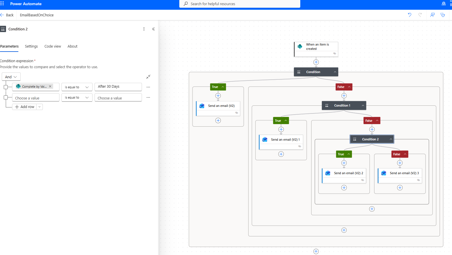 If the Complete by value equals After 30 Days, it will send an email to Recipient 03.